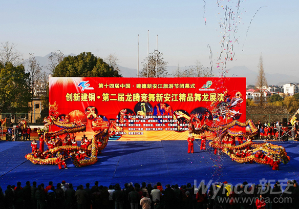 瀏覽量:8589 12月18日,第十四屆中國建德新安江旅游節(jié)閉幕式暨第二屆龍騰競舞新安江精品舞龍展演在建德市壽昌中學(xué)隆重上演。公司“新安金龍”作為首支出演的隊(duì)伍,飛龍乘云,帶領(lǐng)來自建德各鄉(xiāng)鎮(zhèn)(街道)、學(xué)校、消防、藝術(shù)團(tuán)等的18條神龍,上演了一場群龍競舞的恢弘盛宴。